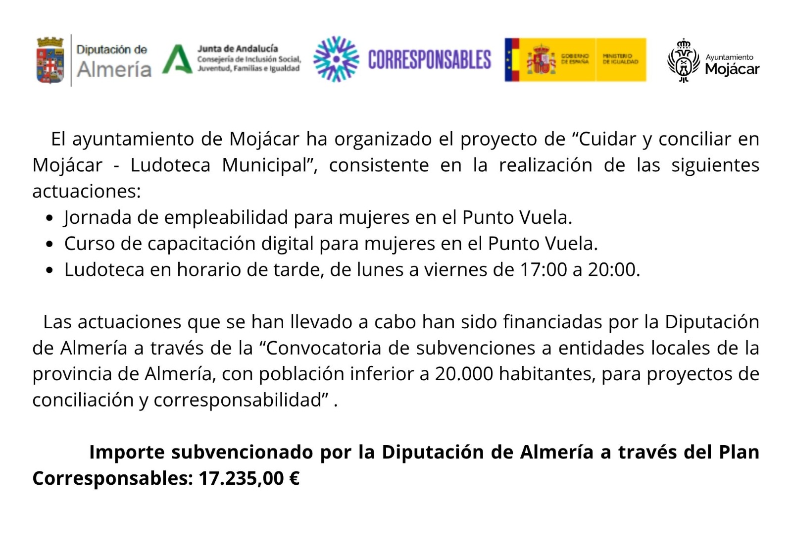 | SUBVENCIÓN PARA PROYECTOS DE CONCILIACIÓN Y CORRESPONSABILIDAD CUIDAR Y CONCILIAR EN MOJACAR - LUDOTECA MUNICIPAL.jpeg | 255 KB |